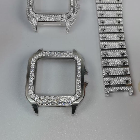1. Compatible with cartier santos series watch,dial、bezel、case and strap are inlaid with diamonds.you can choose cubic zircon、 moissanite diamond、lab-grown diamond, natural diamond, other gemstones)